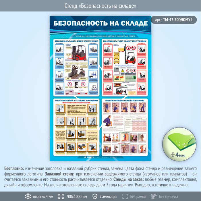 Стенд «Безопасность на складе» (TM-42-ECONOMY2) в Москве купить