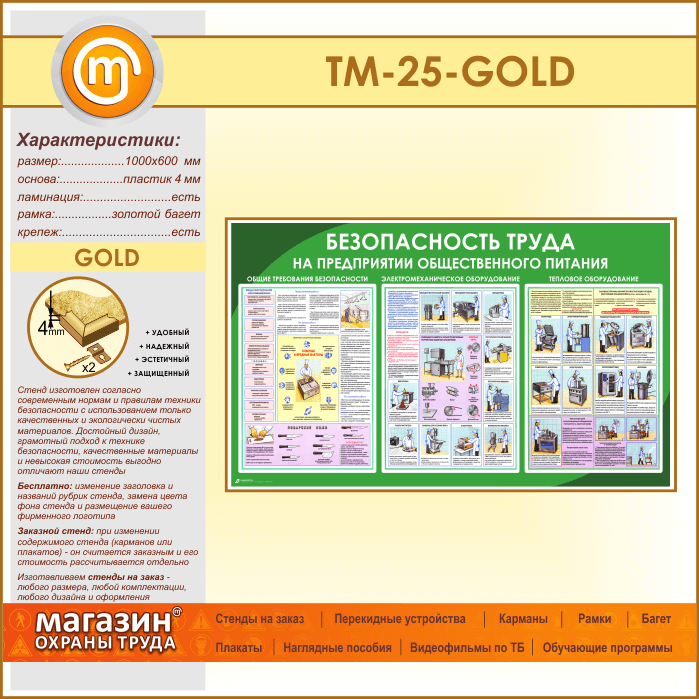 Стенд «Безопасность труда на предприятиях общественного питания» (TM-25-GOLD) в Москве купить