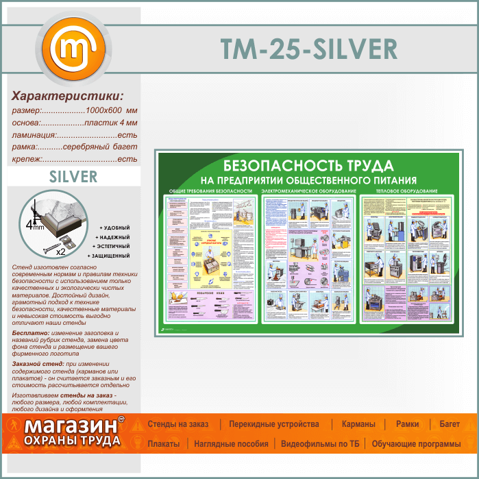 Стенд «Безопасность труда на предприятиях общественного питания» (TM-25-SILVER) в Москве купить
