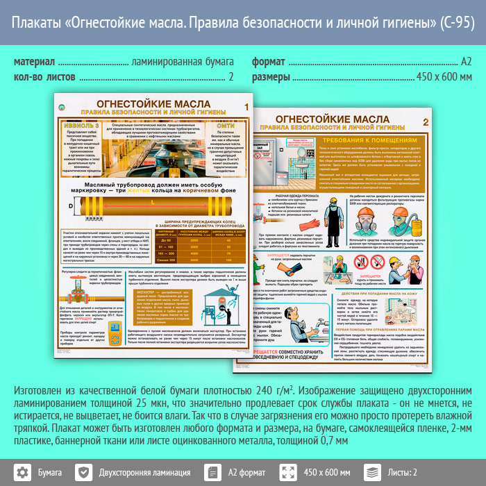 Плакаты «Огнестойкие масла. Правила безопасности и личной гигиены» (С-95, ламинированная бумага, А2, 2 листа) в Москве купить