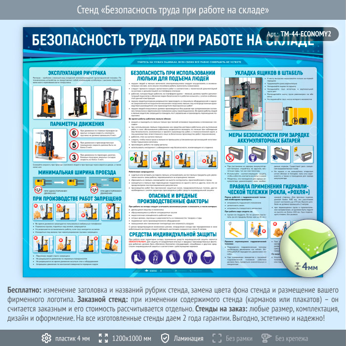 Стенд «Безопасность труда при работе на складе» (TM-44-ECONOMY2) в Москве купить