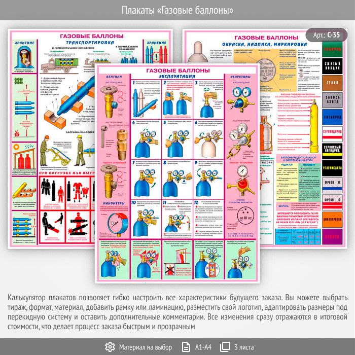 Плакаты «Газовые баллоны» (С-35, 3 листа) в Москве купить