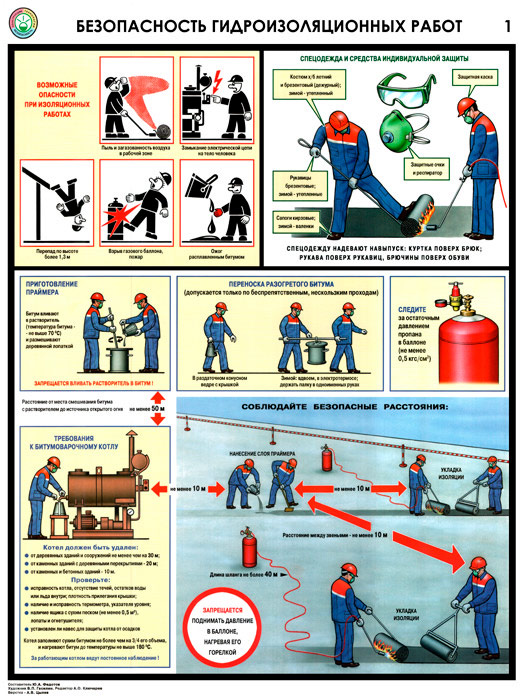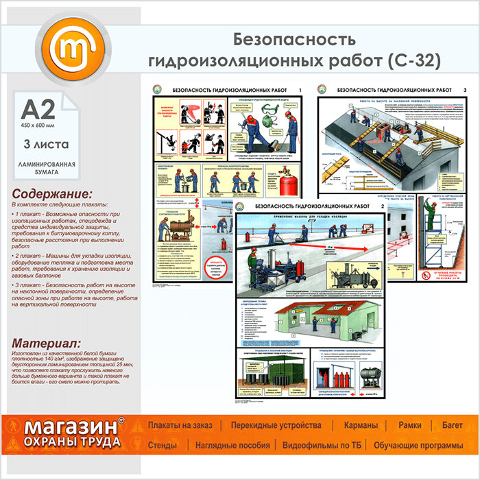 Плакаты «Безопасность гидроизоляционных работ» (С-32, ламинированная бумага, А2, 3 листа) в Москве купить
