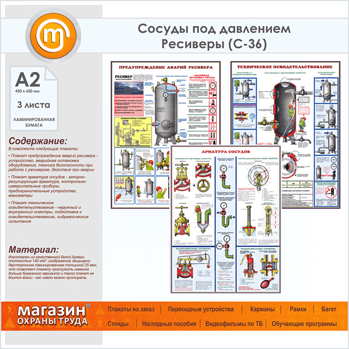 Плакаты «Сосуды под давлением. Ресиверы» (С-36, ламинированная бумага, А2, 3 листа) в Москве купить