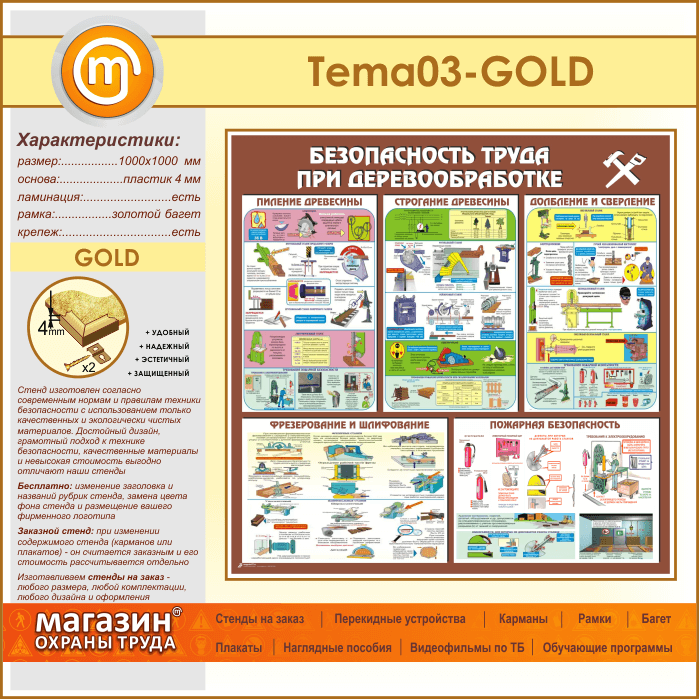 Стенд «Безопасность труда при деревообработке» (TM-03-GOLD) в Москве купить