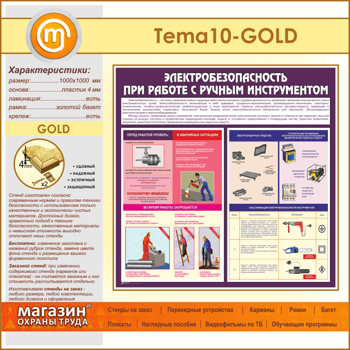 Стенд «Электробезопасность при работе с ручным инструментом» (TM-10-GOLD) в Москве купить