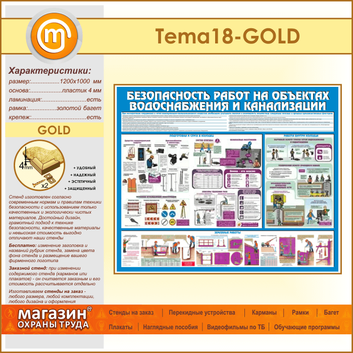 Стенд «Безопасность работ на объектах водоснабжения и канализации» (TM-18-GOLD) в Москве купить