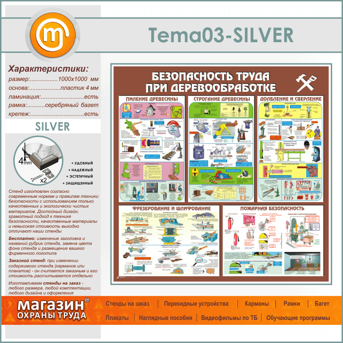 Стенд «Безопасность труда при деревообработке» (TM-03-SILVER) в Москве купить