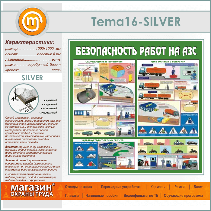 Стенд «Безопасность работ на автозаправочных станциях» (TM-16-SILVER) в Москве купить