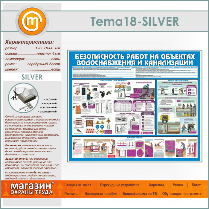 Стенд «Безопасность работ на объектах водоснабжения и канализации» (TM-18-SILVER) в Москве купить