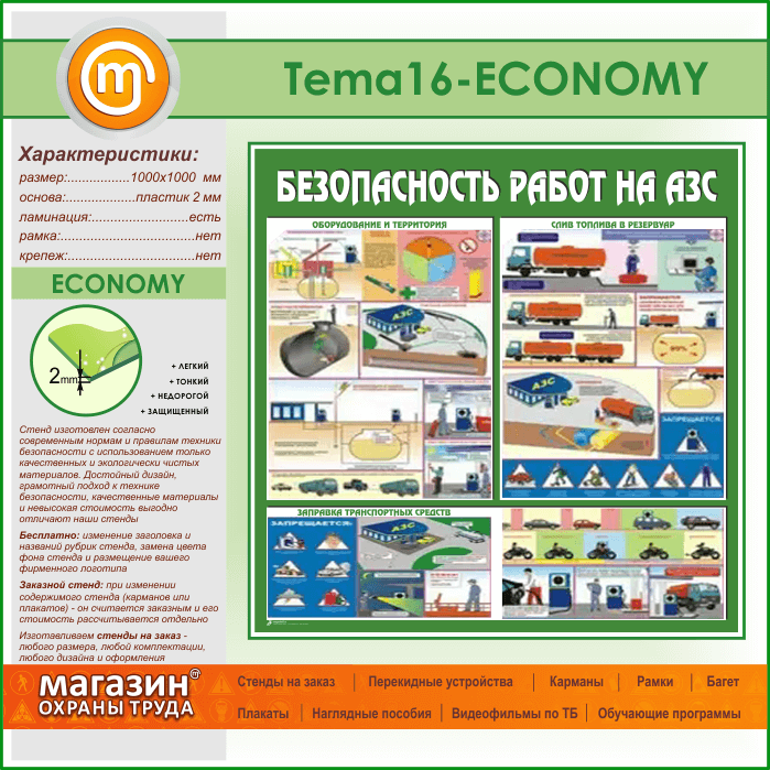 Стенд «Безопасность работ на автозаправочных станциях» (TM-16-ECONOMY) в Москве купить
