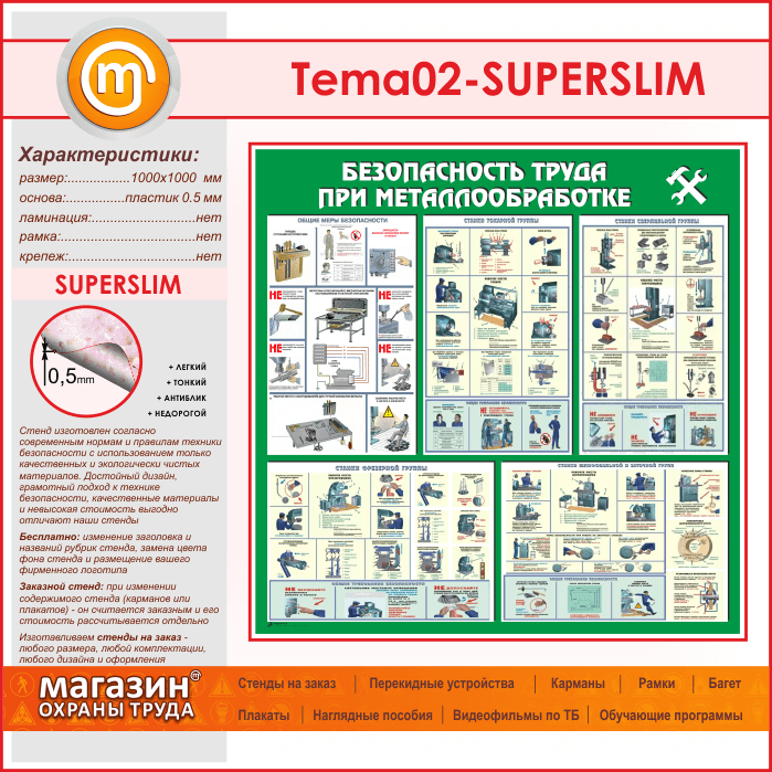 Стенд «Безопасность труда при металлообработке» (TM-02-SUPERSLIM) в Москве купить