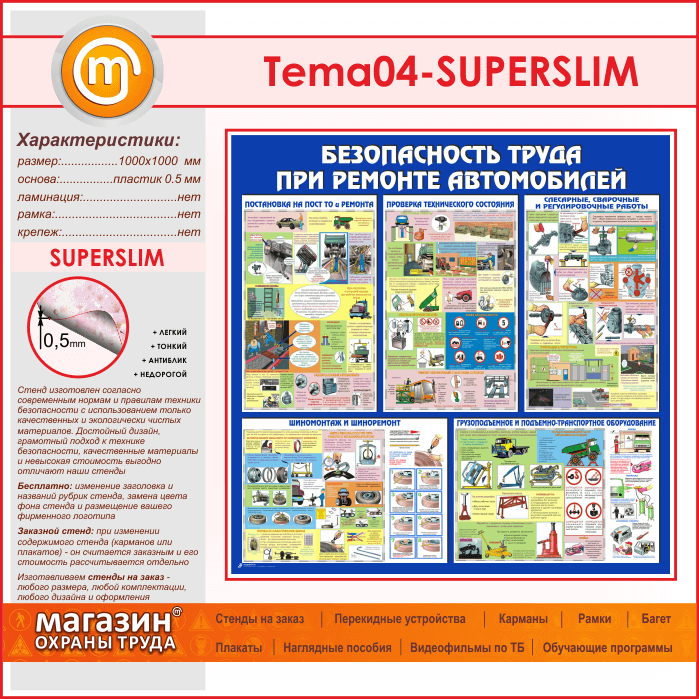 Стенд «Безопасность труда при ремонте автомобилей» (TM-04-SUPERSLIM) в Москве купить