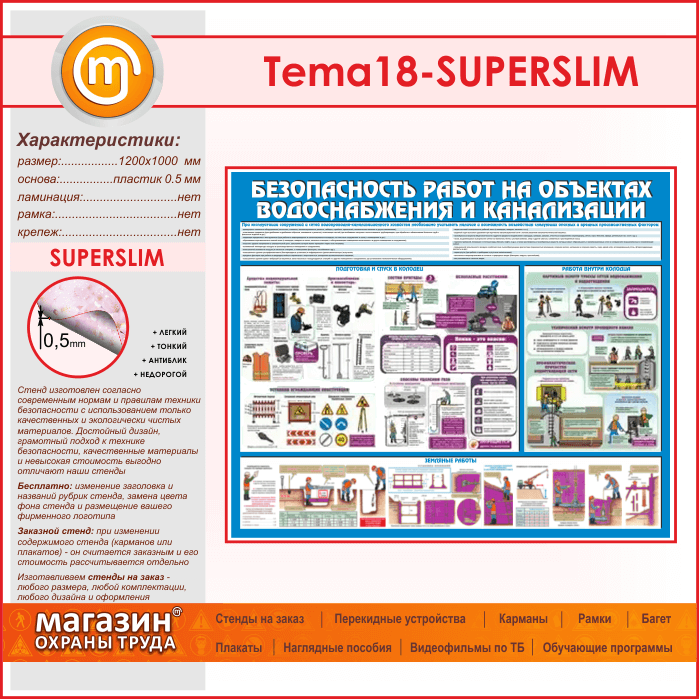 Стенд «Безопасность работ на объектах водоснабжения и канализации» (TM-18-SUPERSLIM) в Москве купить