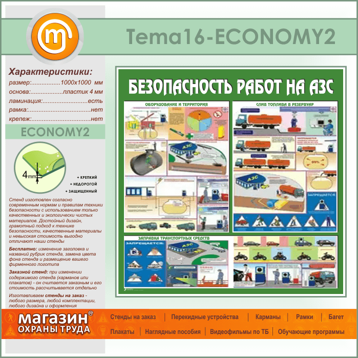 Стенд «Безопасность работ на автозаправочных станциях» (TM-16-ECONOMY2) в Москве купить