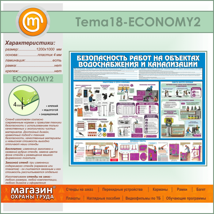 Стенд «Безопасность работ на объектах водоснабжения и канализации» (TM-18-ECONOMY2) в Москве купить