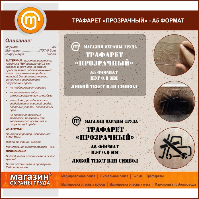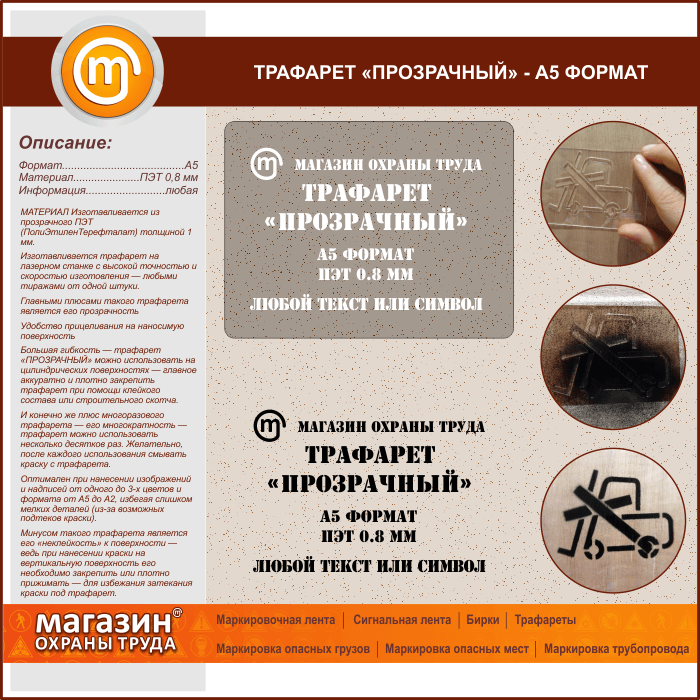 Трафарет «ПРОЗРАЧНЫЙ» (А5 формат, ПЭТ 0,8 мм) в Москве купить