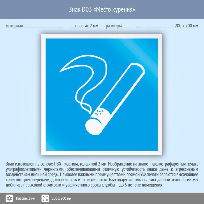 Знак D03 «Место курения» (пластик, 200х200 мм) в Москве купить