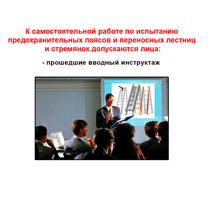 Персонал при испытании предохранительных поясов, переносных лестниц и стремянок | Персонал при испытании предохранительных поясов, переносных лестниц и стремянок |