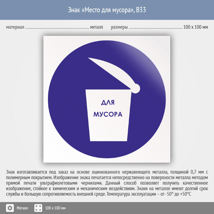 Знак «Место для мусора», B33 (металл, 100х100 мм) в Москве купить