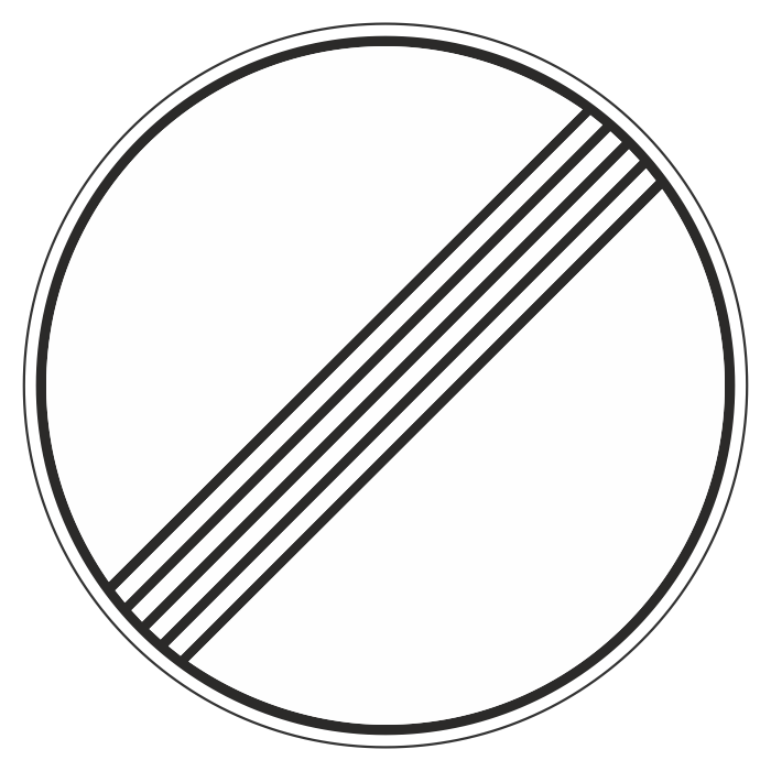 Дорожный знак 3.31 «Конец зоны всех ограничений» (металл 0,8 мм, III типоразмер: диаметр 900 мм, С/О пленка: тип А инженерная) в Москве купить