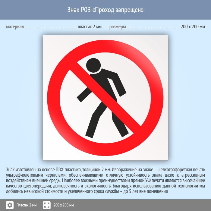 Знак P03 «Проход запрещен» (пластик, 200х200 мм) в Москве купить
