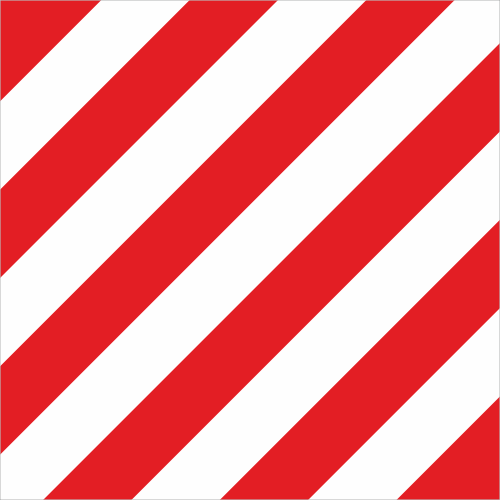 Изготавливается в виде щитка размером 400 x 400 мм с нанесенными по диагонали красными и белыми чередующимися полосами шириной 50 мм со световозвращающей поверхностью