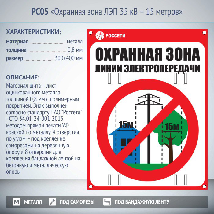 Знак «Охранная зона ЛЭП 35 кВ – 15 метров», PC05