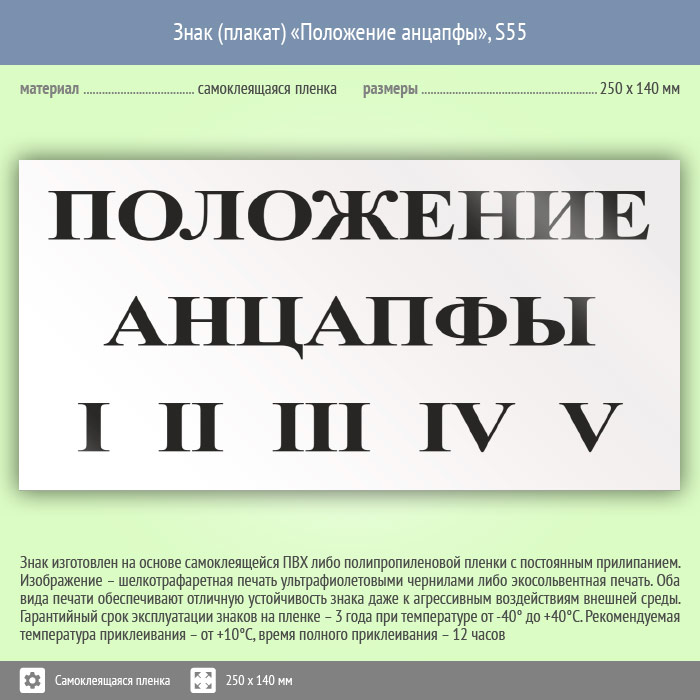 Знак (плакат) «Положение анцапфы», S55 (пленка, 250х140 мм)