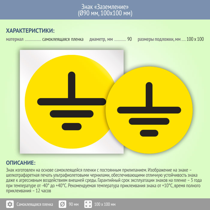 Знак (плакат) «Заземление», S46 (пленка, диаметр 90 мм, 100х100 мм) в Москве купить