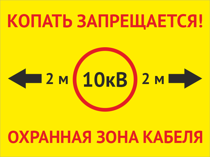 Табличка «Охранная зона кабеля 10 кВ. Копать запрещается», OZK-01 (металл, 400х300 мм) в Москве купить