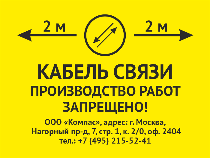 Знак «Охранная зона кабеля связи. Производство работ запрещено», OZK-03 (металл, 400х300 мм) в Москве купить