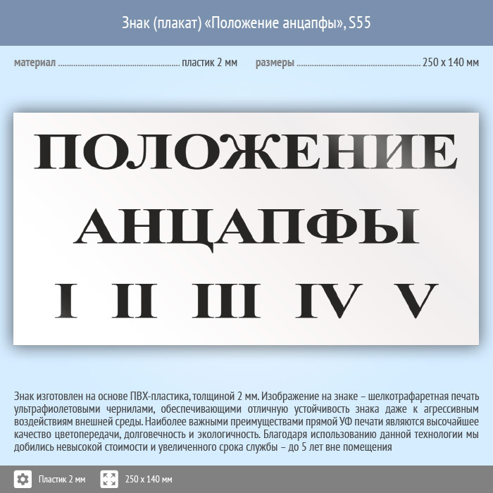Знак (плакат) «Положение анцапфы», S55 (пластик, 250х140 мм) в Москве купить