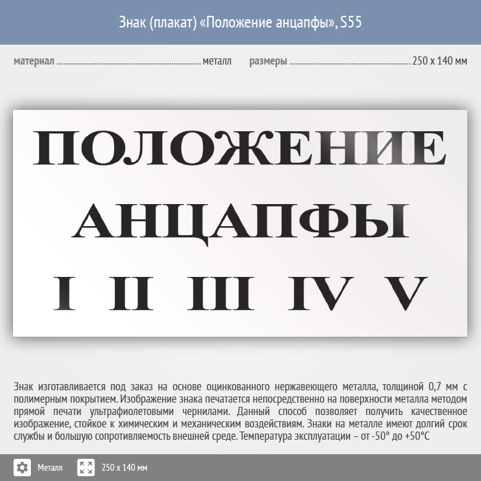 Знак (плакат) «Положение анцапфы», S55 (металл, 250х140 мм) в Москве купить