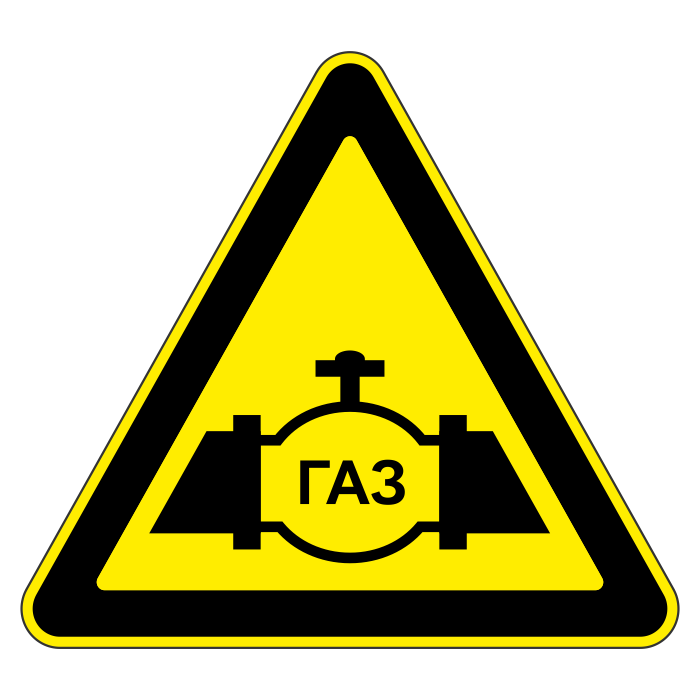 Знак «Осторожно газопровод», МГ-2 (металл 0,8 мм, II типоразмер: сторона 900 мм, С/О пленка: тип Б высокоинтенсивная) в Москве купить