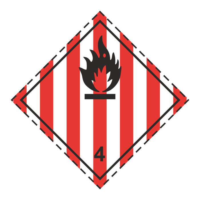 Знак перевозки опасных грузов «Класс 4.1. Легковоспламеняющиеся твердые вещества, самореактивные вещества и твердые десенсибилизированные взрывчатые вещества» (светоотражающий металл ламинированный, 250х250 мм) в Москве купить