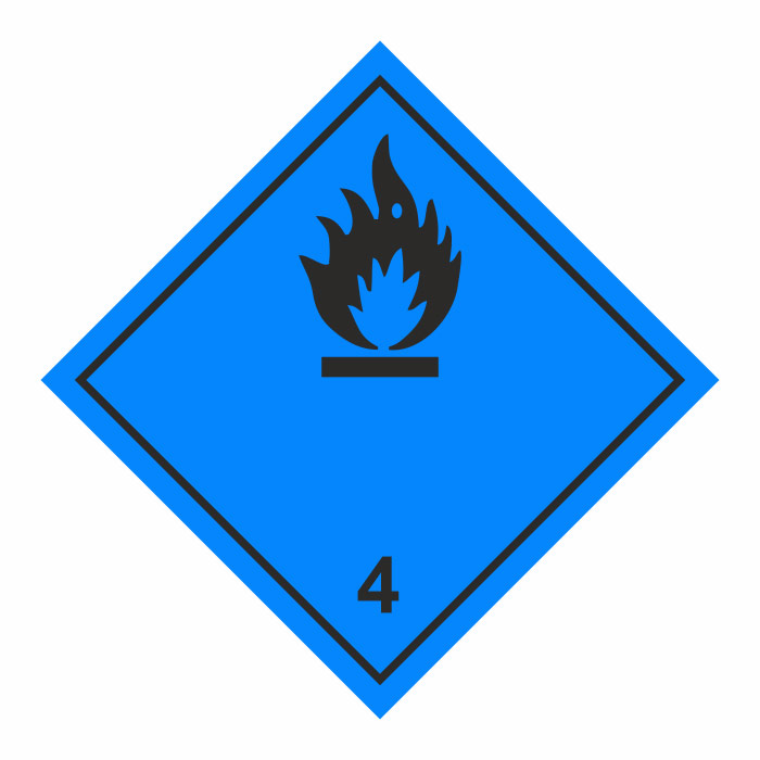 Знак перевозки опасных грузов «Класс 4.3. Вещества, выделяющие легковоспламеняющиеся газы при соприкосновении с водой» (светоотражающий металл, 300х300 мм) в Москве купить