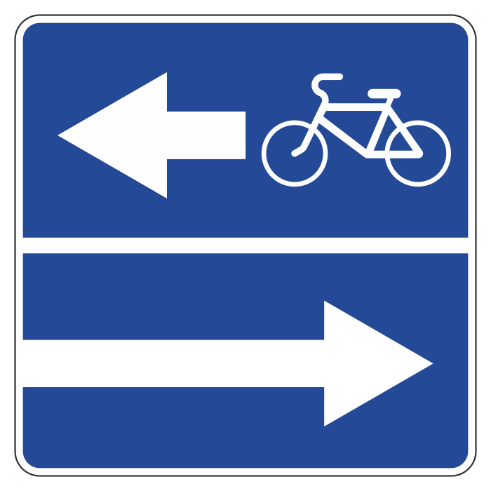 Дорожный знак 5.13.3 «Выезд на дорогу с полосой для велосипедистов» (металл 0,8 мм, II типоразмер: сторона 700 мм, С/О пленка: тип А инженерная) в Москве купить