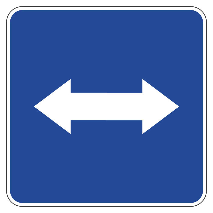 Дорожный знак 5.10 «Выезд на дорогу с реверсивным движением» (металл 0,8 мм, III типоразмер: сторона 900 мм, С/О пленка: тип В алмазная) в Москве купить