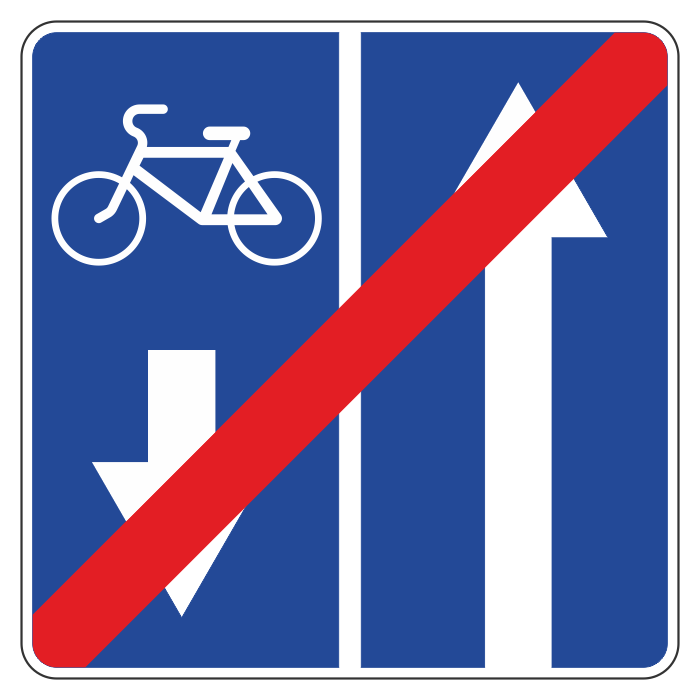 Дорожный знак 5.12.2 «Конец дороги с полосой для велосипедистов» (металл 0,8 мм, III типоразмер: сторона 900 мм, С/О пленка: тип Б высокоинтенсивная) в Москве купить