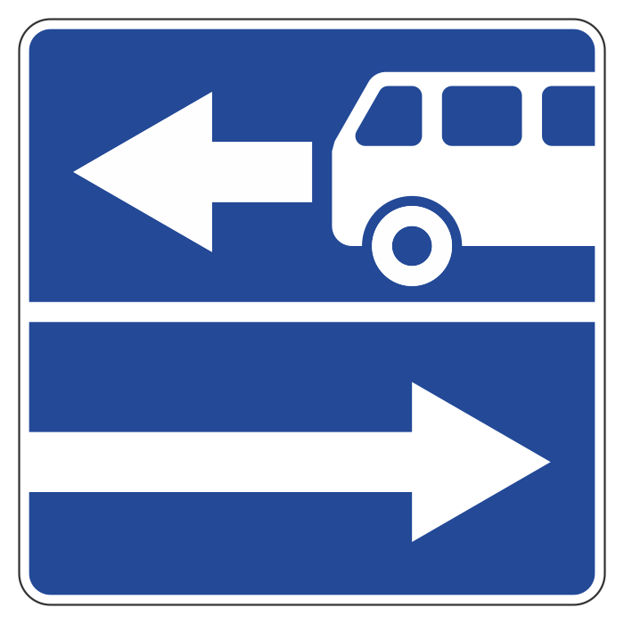 Дорожный знак 5.13.1 «Выезд на дорогу с полосой для маршрутных транспортных средств» (металл 0,8 мм, II типоразмер: сторона 700 мм, С/О пленка: тип А инженерная) в Москве купить