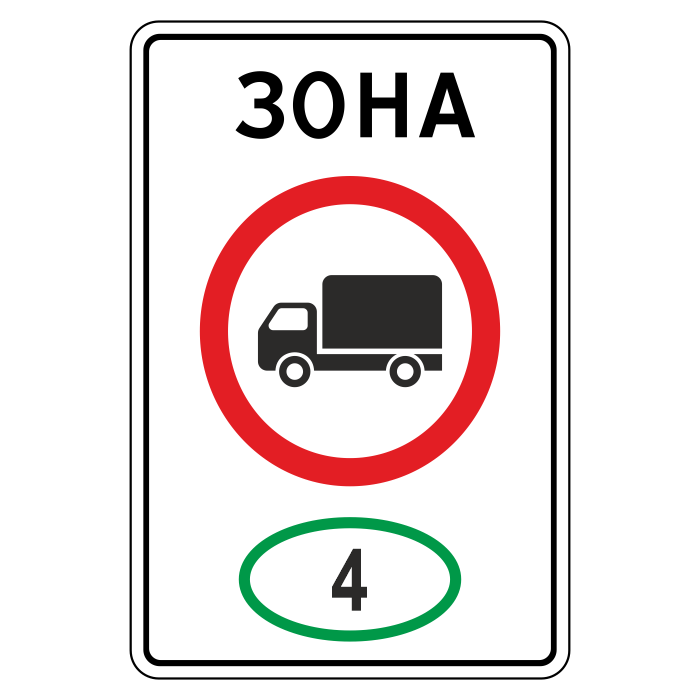 Дорожный знак 5.36 «Зона с ограничением экологического класса грузовых автомобилей» (металл 0,8 мм, I типоразмер: 900х600 мм, С/О пленка: тип А коммерческая) в Москве купить