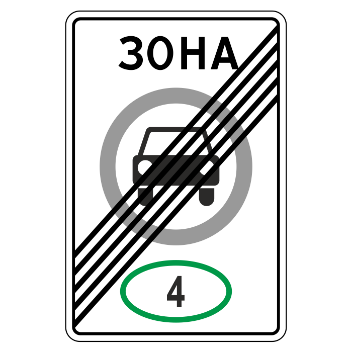 Дорожный знак 5.37 «Конец зоны с ограничением экологического класса механических транспортных средств» (металл 0,8 мм, I типоразмер: 900х600 мм, С/О пленка: тип В алмазная) в Москве купить