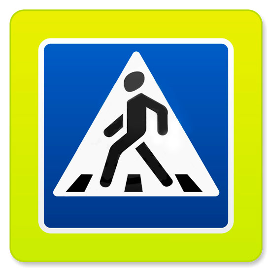 Дорожный знак 5.19.1д «Пешеходный переход» флуоресцентный (металл 0,8 мм, II типоразмер + кант: сторона 900 мм, С/О пленка: тип В алмазная) в Москве купить