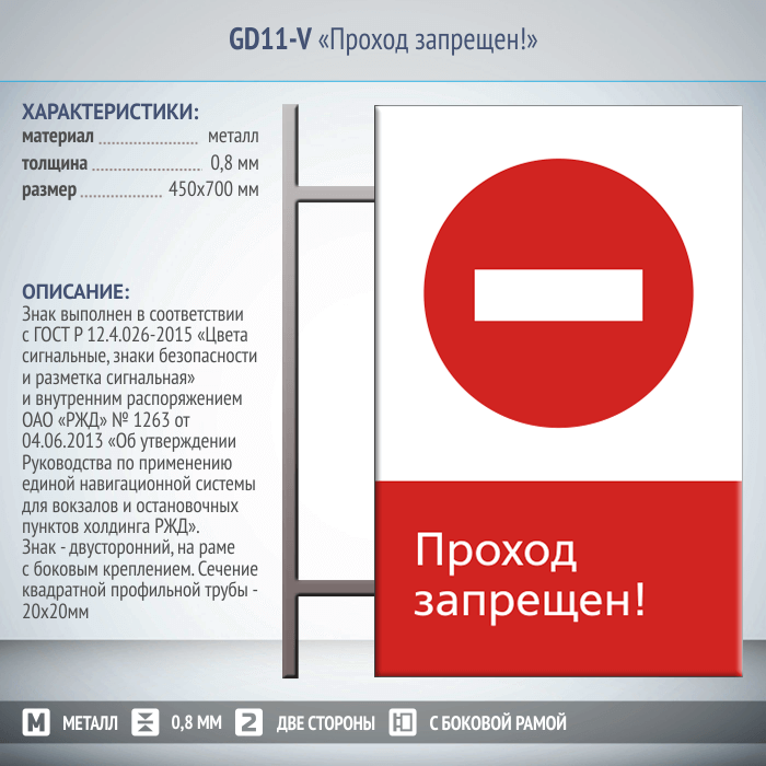 Знак «Проход запрещен!», GD11-V (двусторонний вертикальный, 450х700 мм, металл, на раме с боковым креплением) в Москве купить