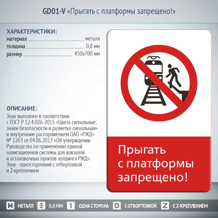 Знак «Прыгать с платформы запрещено!», GD01-V (односторонний вертикальный, 450х700 мм, металл, с отбортовкой и Z-креплением) в Москве купить