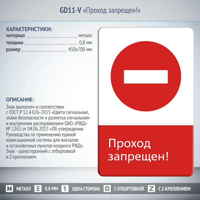 Знак «Проход запрещен!», GD11-V (односторонний вертикальный, 450х700 мм, металл, с отбортовкой и Z-креплением) в Москве купить
