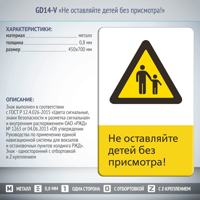 Знак «Не оставляйте детей без присмотра!», GD14-V (односторонний вертикальный, 450х700 мм, металл, с отбортовкой и Z-креплением) в Москве купить