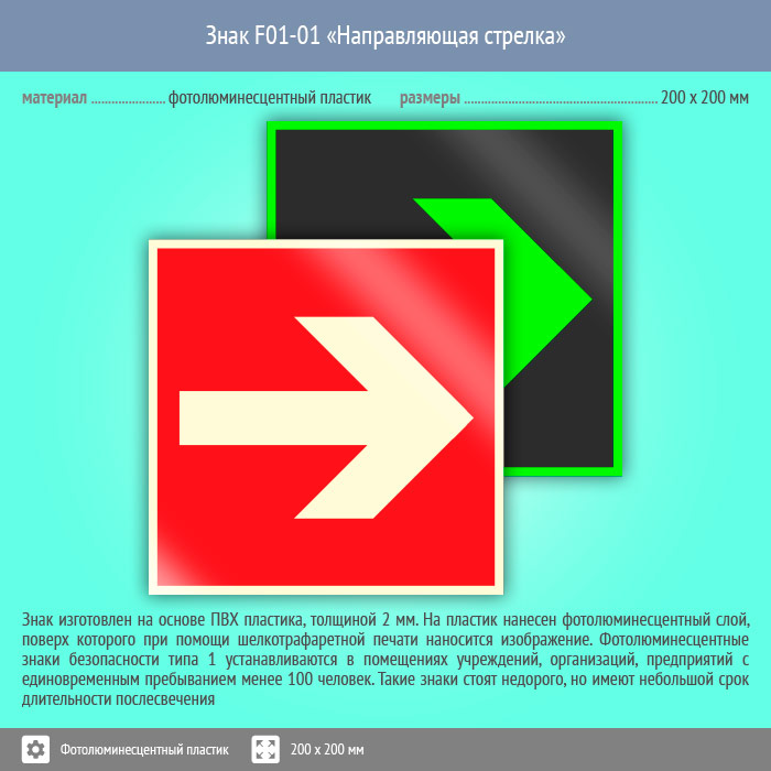 Знак F01-01 «Направляющая стрелка» (фотолюминесцентный пластик, 200х200 мм) в Москве купить