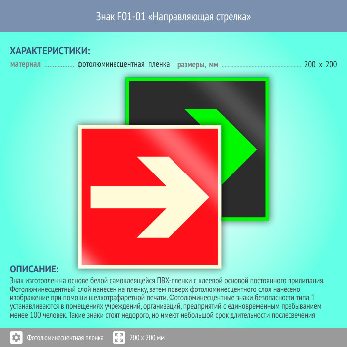 Знак F01-01 «Направляющая стрелка» (фотолюминесцентная пленка, 200х200 мм) в Москве купить